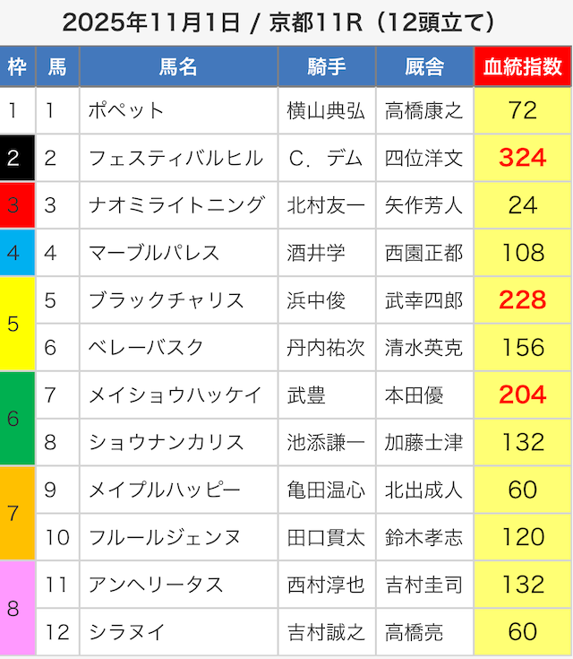 他のサイトと違い買い目の公開ではなく、血統指数という独自の指数を提供しています。