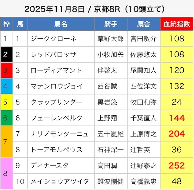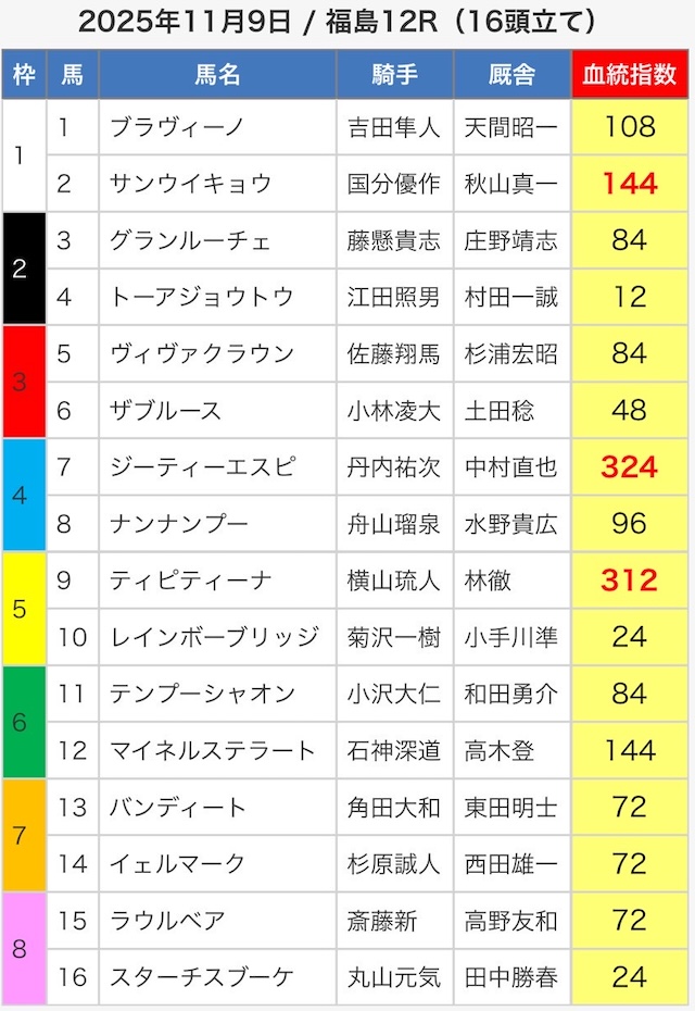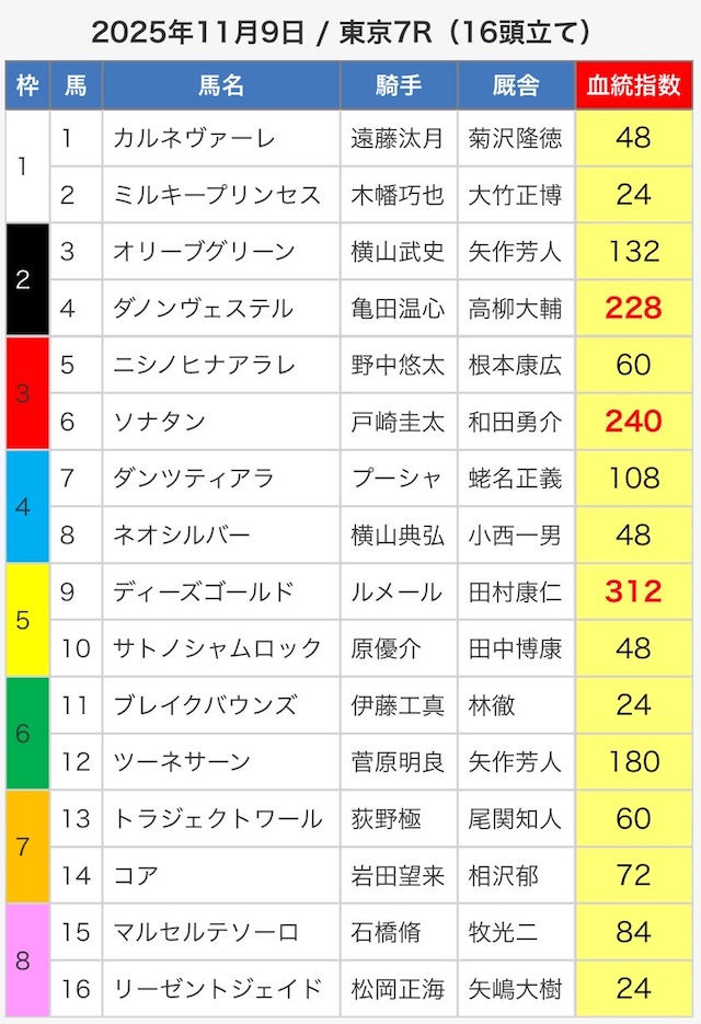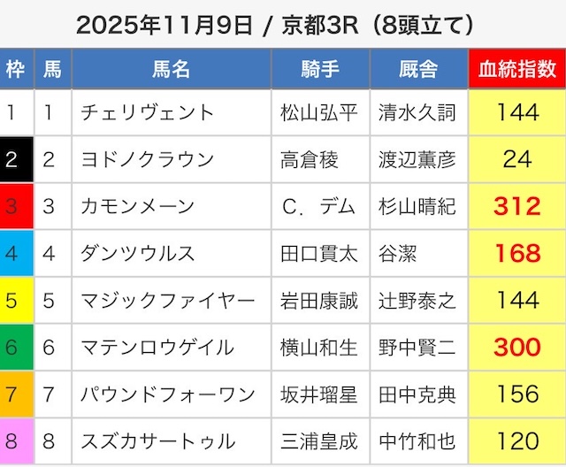 例えば、指数値が一番高い1頭で1点買いをしたり、上位3頭で3頭ボックスで勝負したりといろいろな使い方をする事もできます。