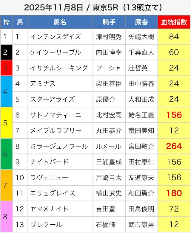 えーあいNEOは『血統データAI指数』というコンテンツを公開しています。