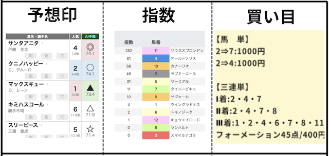 買い目を公開しているAIもあれば、予想印や指数を公開しているAIも存在しています。