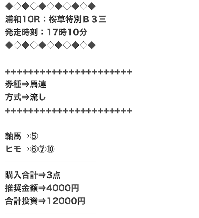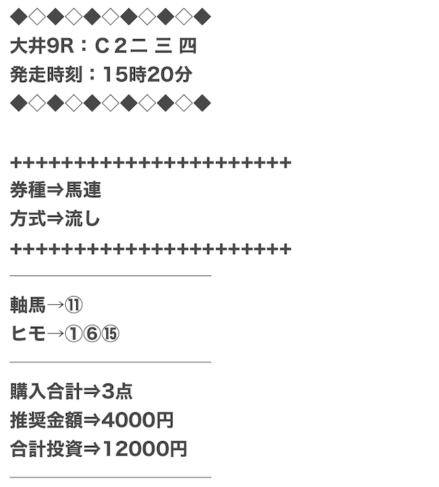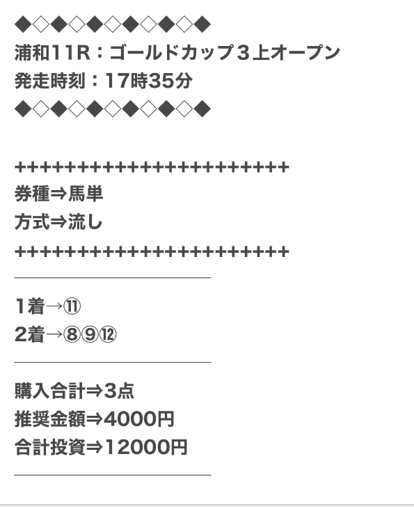おれが買った時は15000円で19万も稼げたから次の予想の時も使ってみたんだよね。