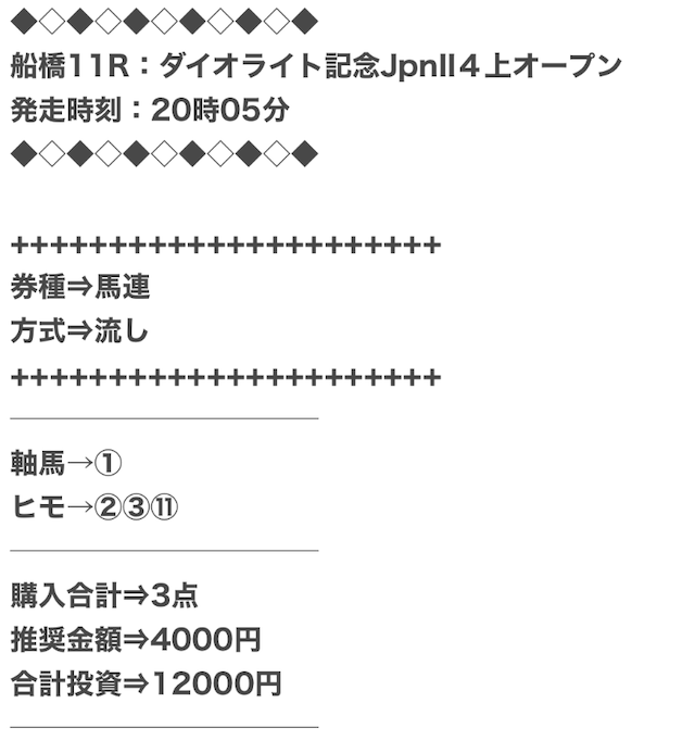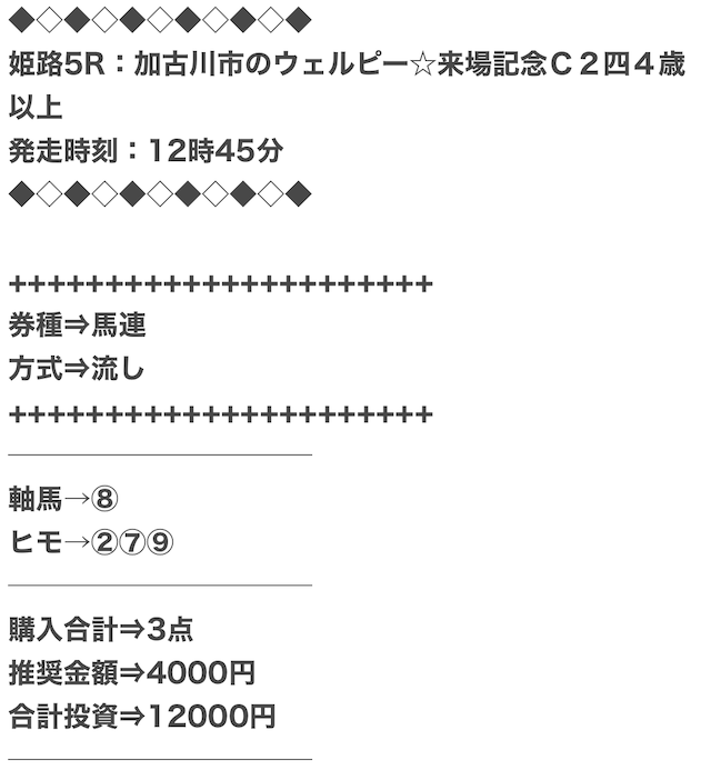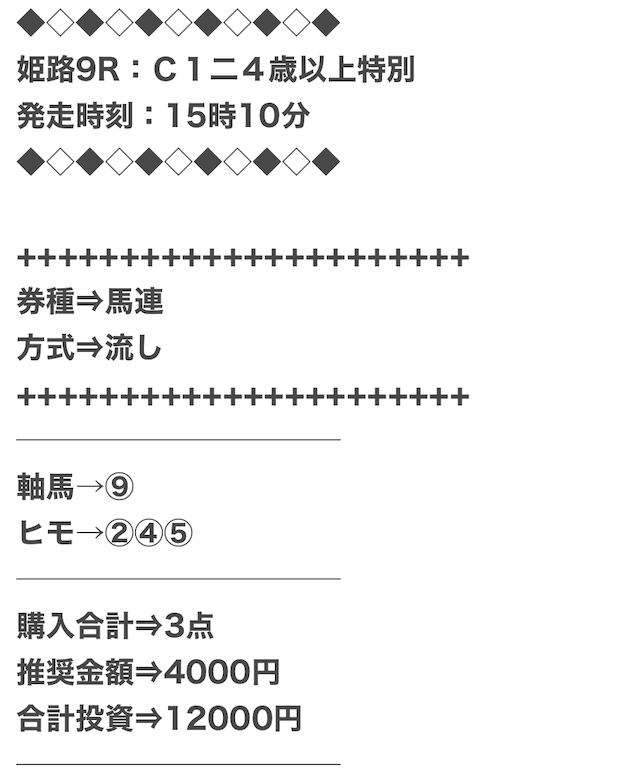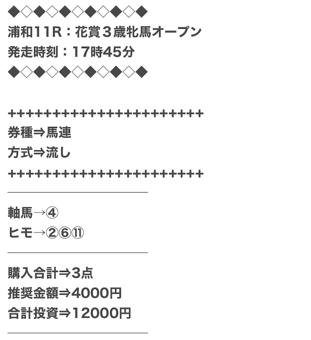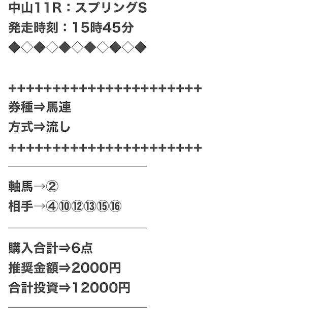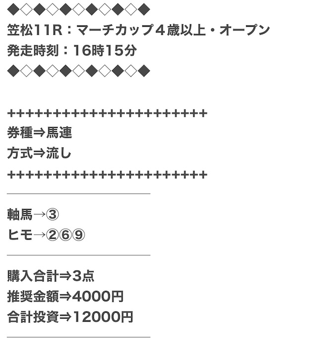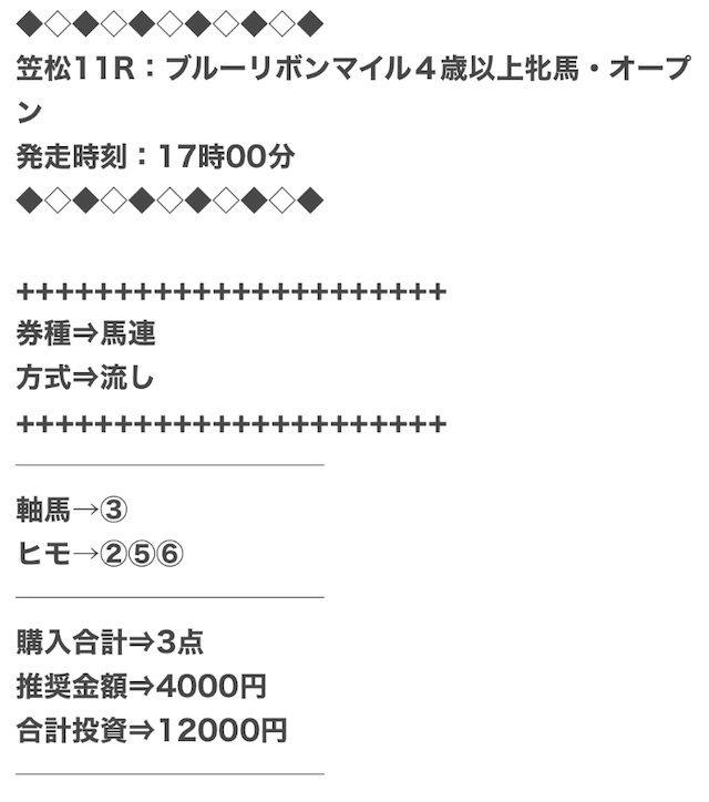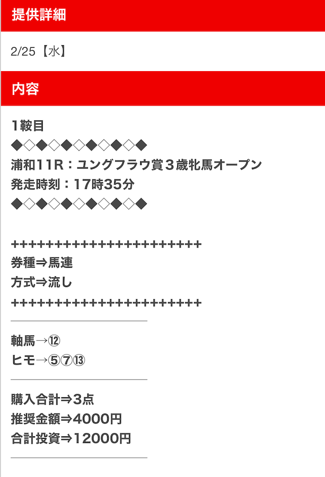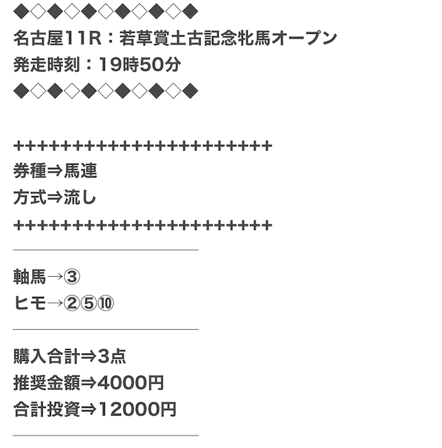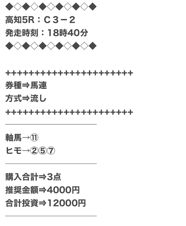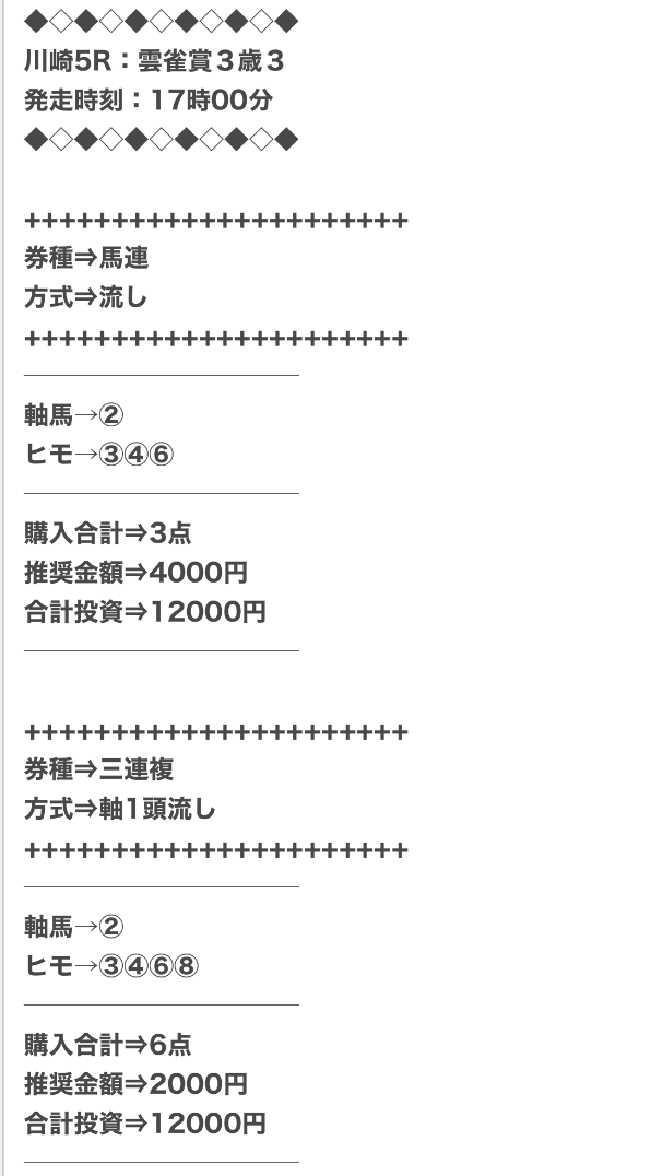 また、穴馬ch25は他の予想サイトより少点数予想を公開しているため、低コストで勝負できます。