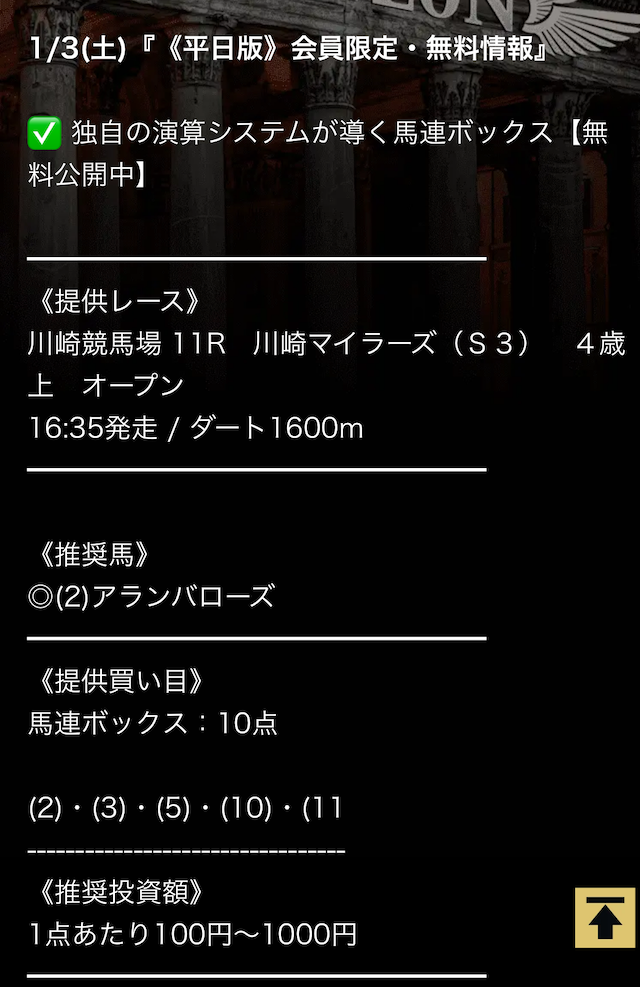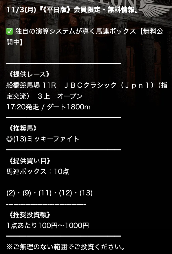 十分な資金が貯まったら、有料予想に参加してみてはいかがでしょうか。