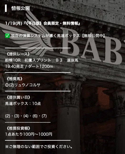 本日はバビロンという競馬予想サイトを見つけたので検証します。