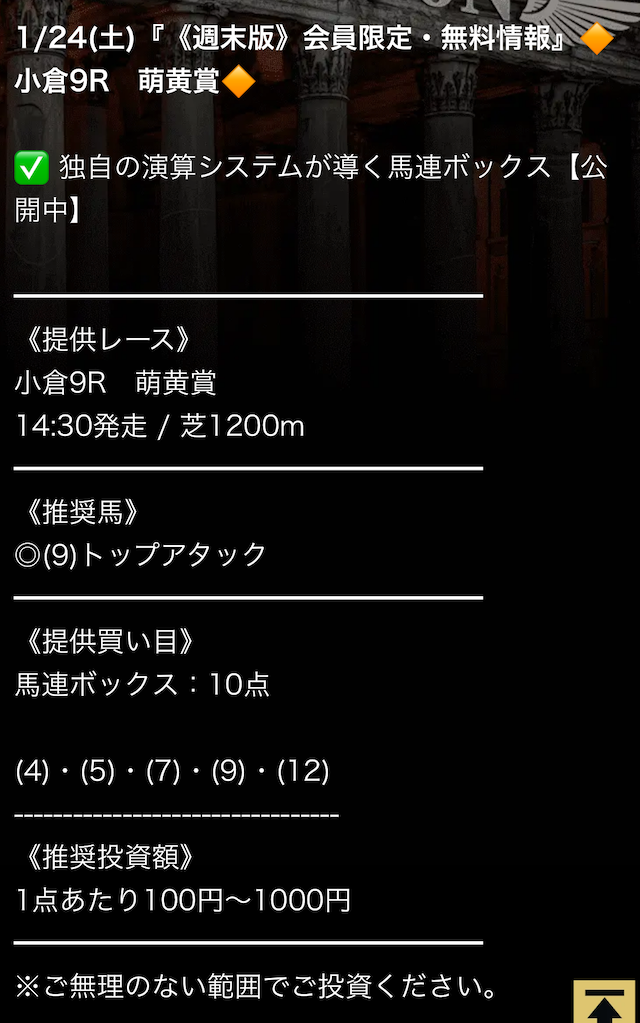 これで来週は有料予想でがっぽり稼ぐぞ。