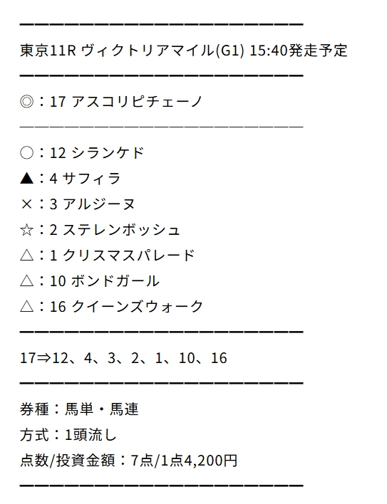 完全指定案件、本当に助かりました。引き続き馬争さんで競馬やっていきたいと思います!