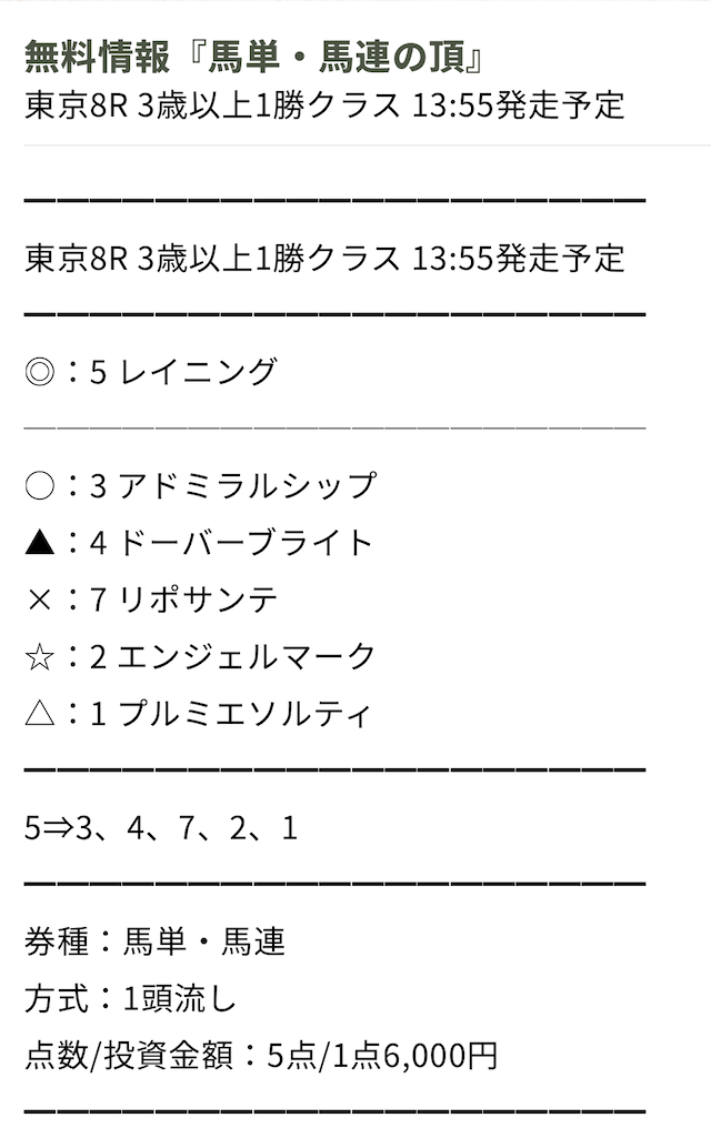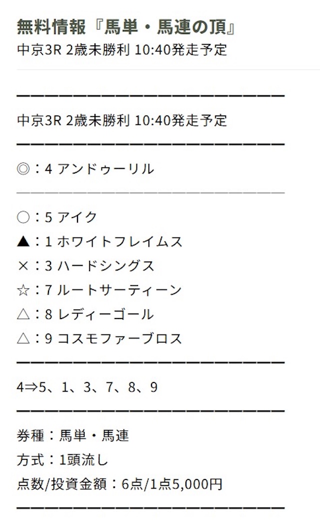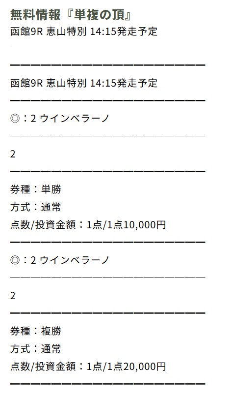 馬争の頂きの一押し限定有料情報、ガチで稼げます。