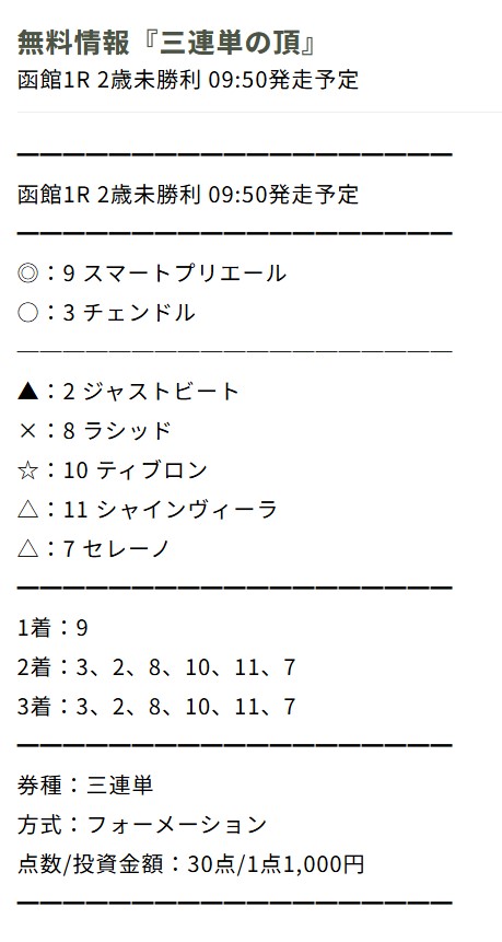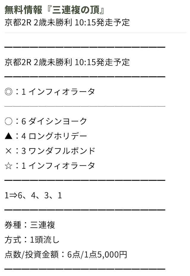 馬争の絶頂三連単、実績レースを見て的中していたので今回初めて利用しました。