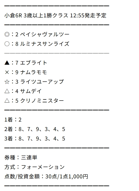土曜小倉のあざみ賞、特別限定有料情報の馬単情報が的中でそれだけで14万6千7百円も獲れました。本当に有益な情報でした。