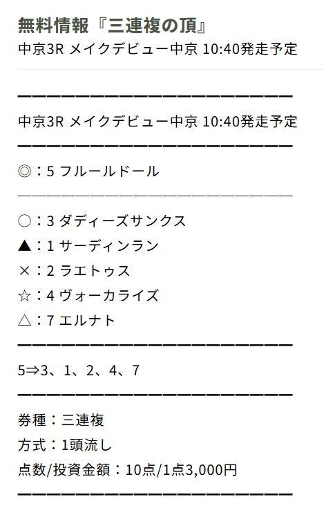 ここまでを見ると本当に馬争の頂が公開する予想を使えば、予想お精度・払い戻しともに安定するのか。