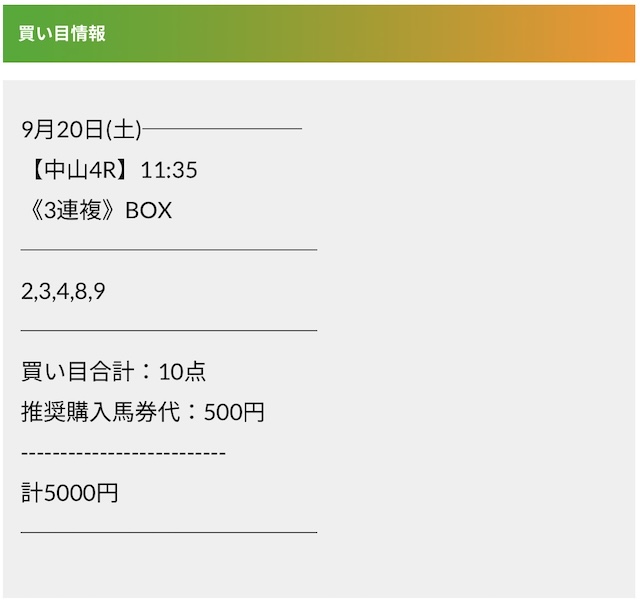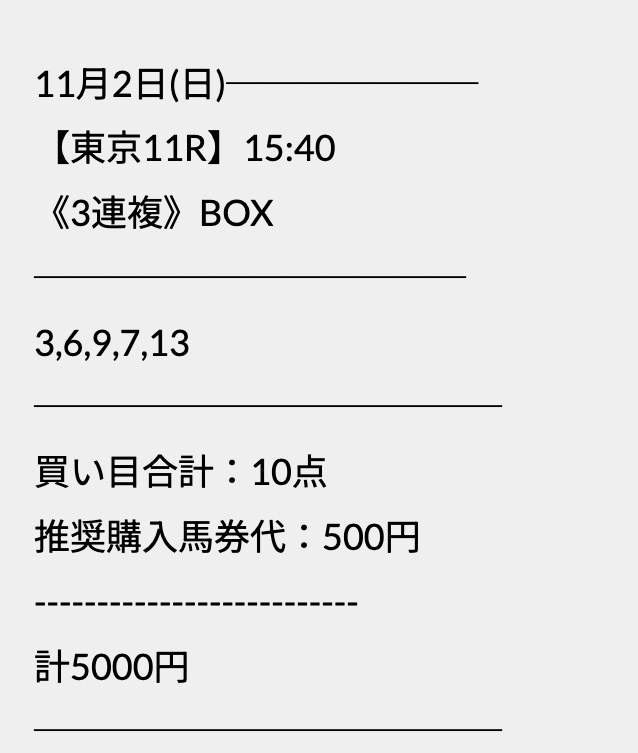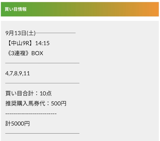 推奨どおり、1点500円の計5,000円で勝負をします。