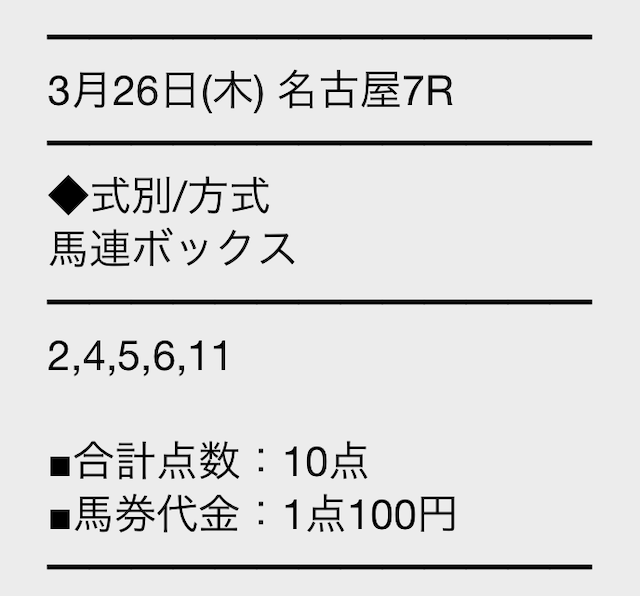 | 2026/3/26 | 名古屋7R | × | 0円 |