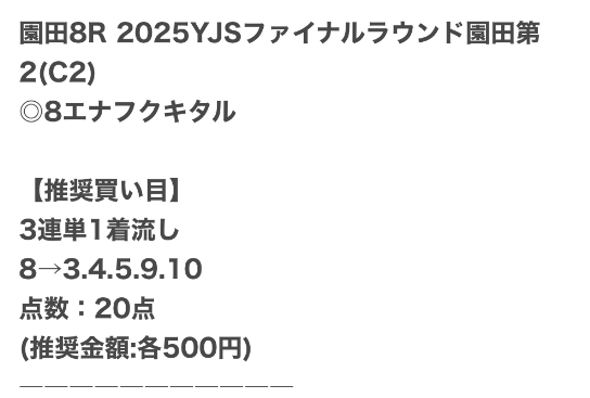 推奨馬券代の記載は無かったので、自身に合った資金で参加してください。