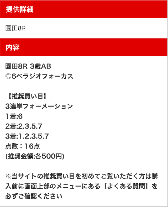 | 推奨馬券代 | 記載なし |