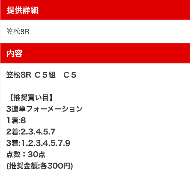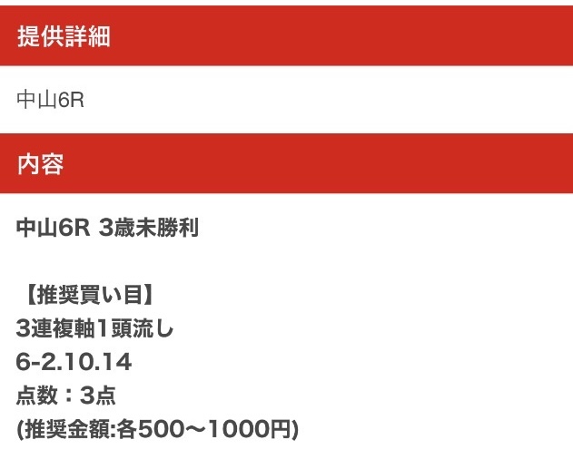 | 買い目の 提供日時 |