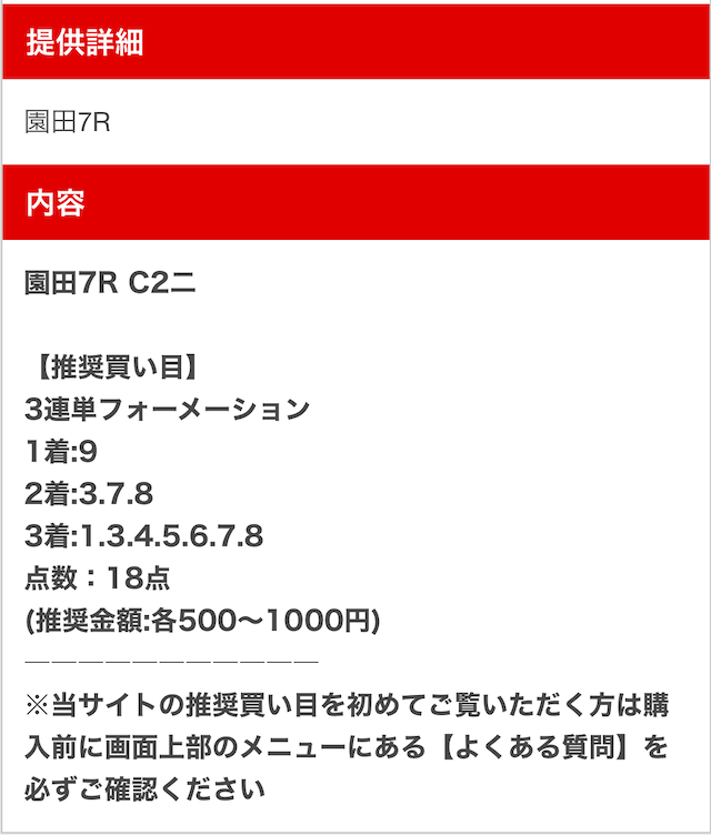 実際に公開された買い目はこちらです。