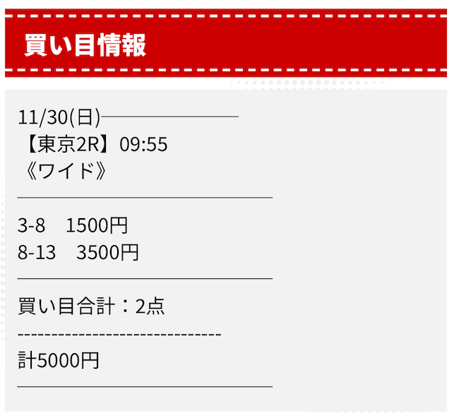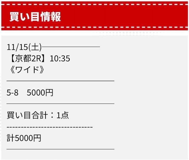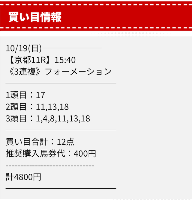 | 推奨馬券代 | 1R/4,000円〜6,000円 |