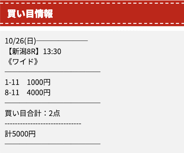 推奨金額は1点300円ですが、期待を込めて1点1,000円で勝負。