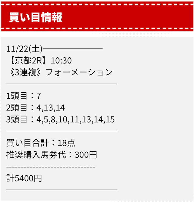 3連複で1レース分、ワイドで1レース分の予想が公開されるようです。