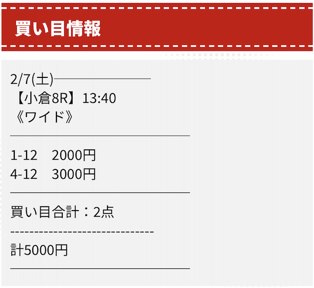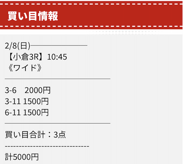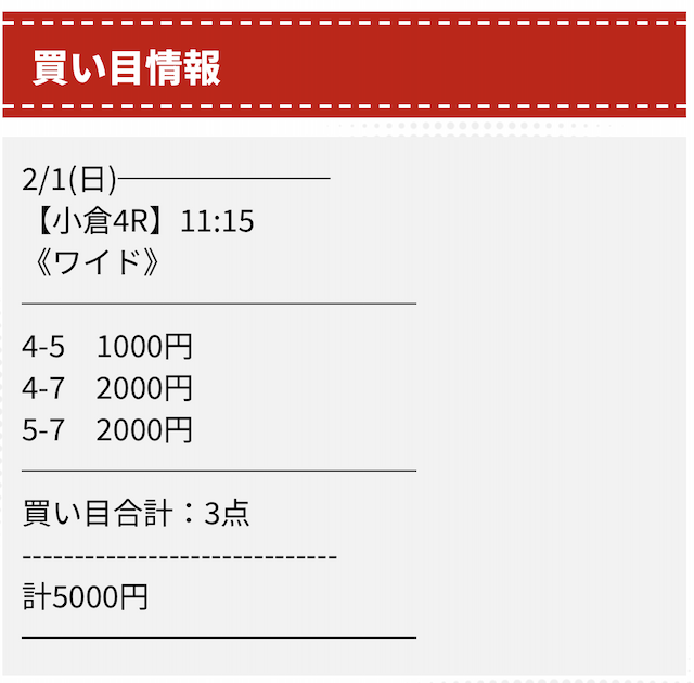 実際に公開された買い目はこちらです。