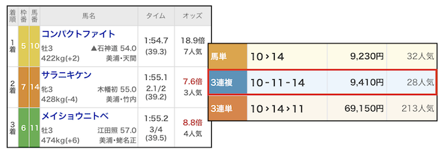| ⑪メイショウニトベ | 8.8倍 | 4番人気 |