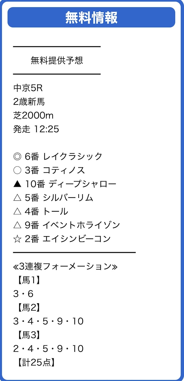 実際に公開された買い目はこちらです。