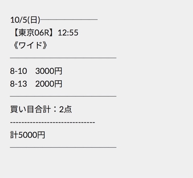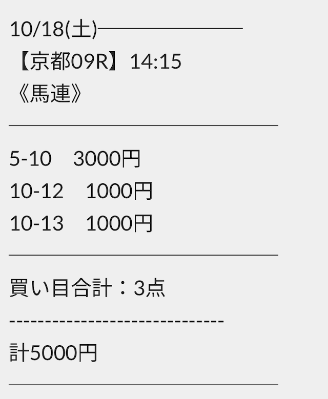 さらに同じ券種で勝負をしても買い目の点数を変えており、1点に掛ける馬券代も常に変えています。