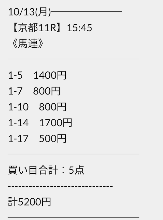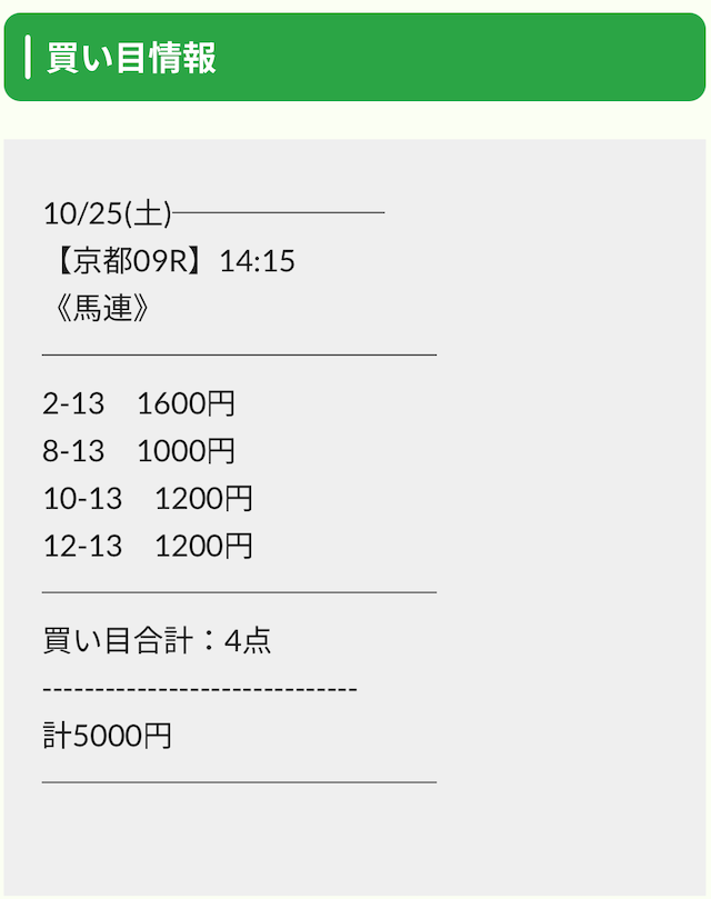 難易度が高い分、的中率を担保するために買い目の点数を広げがちですが、えぶりの点数は10点以内。