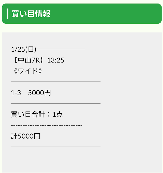 | 馬券代 | 25,000円 |