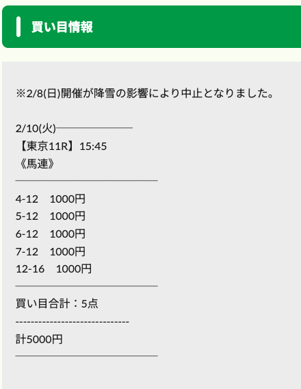 さらに有料予想でも同じく買い目の点数を変えて、コストを抑えていました。