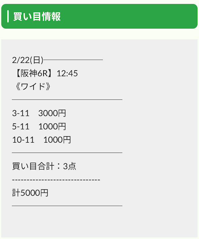 穴馬を含めた買い目では点数を広げて、的中率を担保しています。
