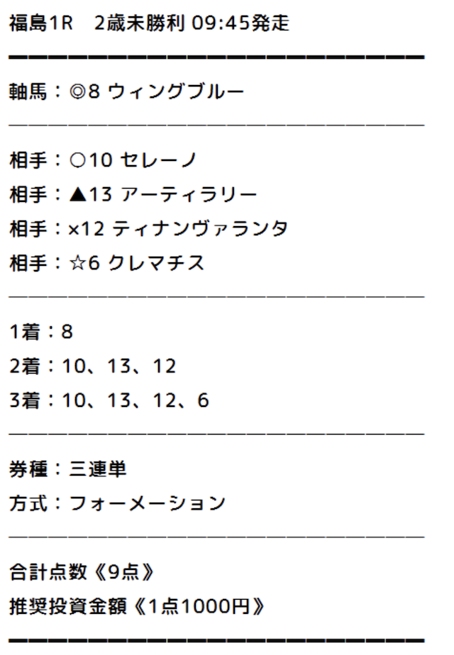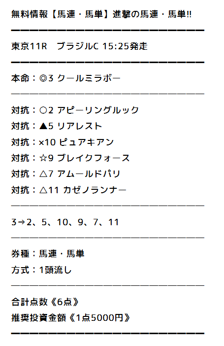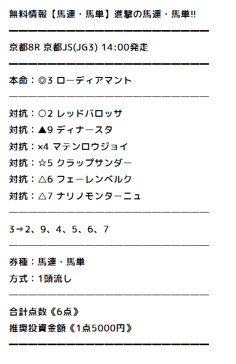 無料予想だけ試してみたら意外と精度が高くて、2回連続で的中! 無料でも十分満足できる内容でした。結果はだいたい2回で12万勝ちくらいかな?本当に十分です。