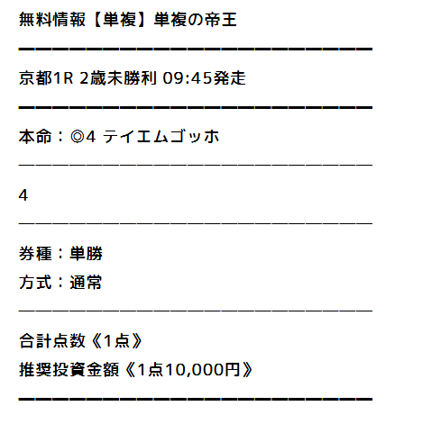 | 単複の帝王 | 1鞍3,000円~10,000円 | 土日1鞍~6鞍 | 10~100万円 |