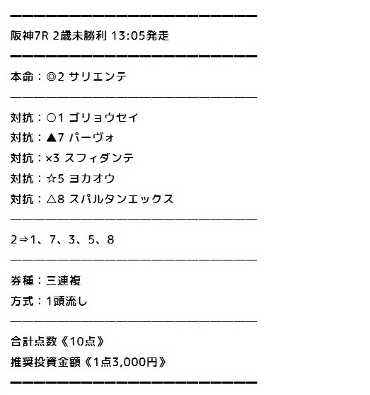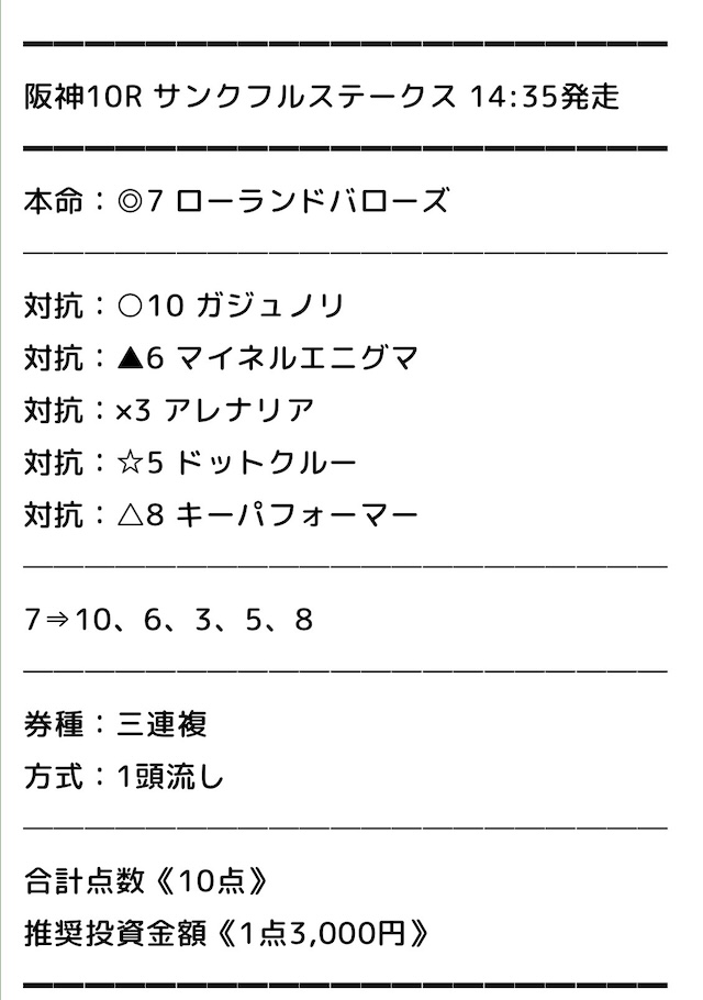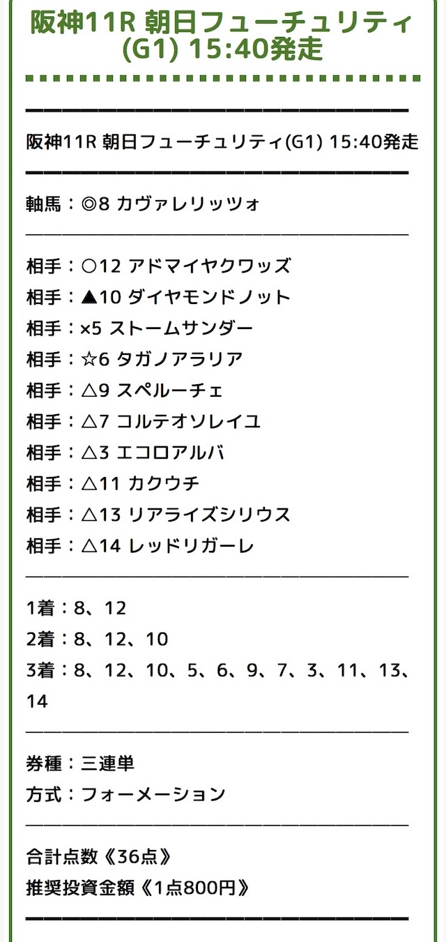 相手は広めに押さえていますが、単勝3.1倍の2番人気を押さえていないのは不安材料。