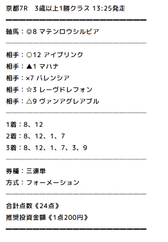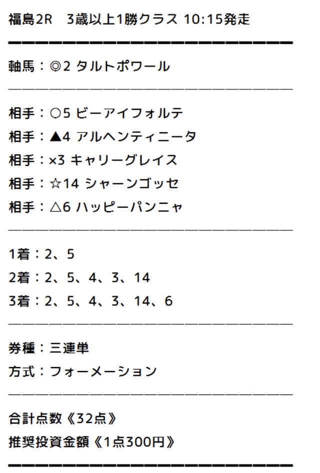 券種はレースによって異なり、最も期待値の高い券種の買い目が公開されるとのこと。