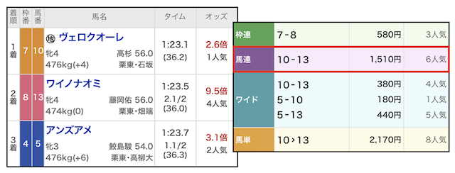 | ▲⑬ワイノナオミ | 9.5倍 | 4番人気 |