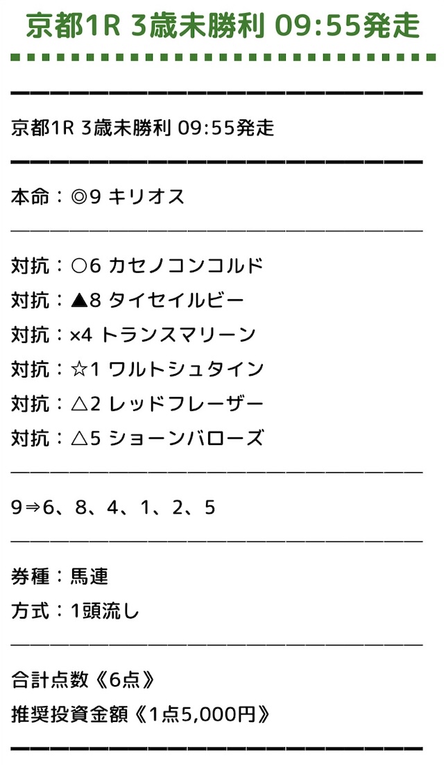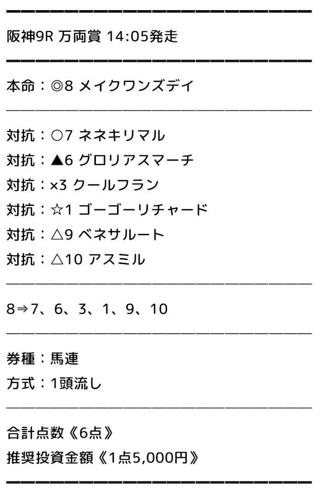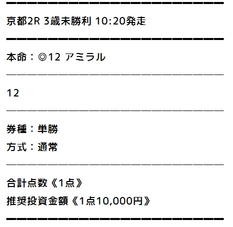 | 推奨馬券代 | レース毎に指定 |
