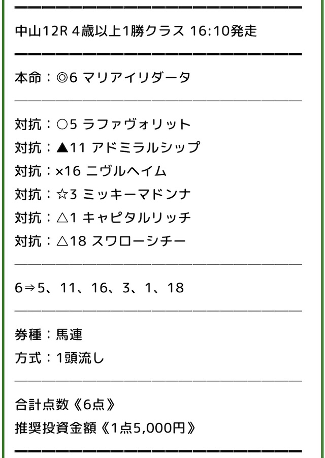 少し怖いですが検証では、みどりの的中らんどの買い目通りに馬券を購入していきます。