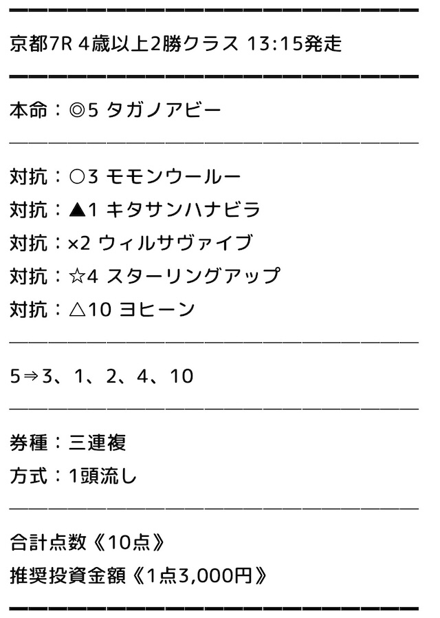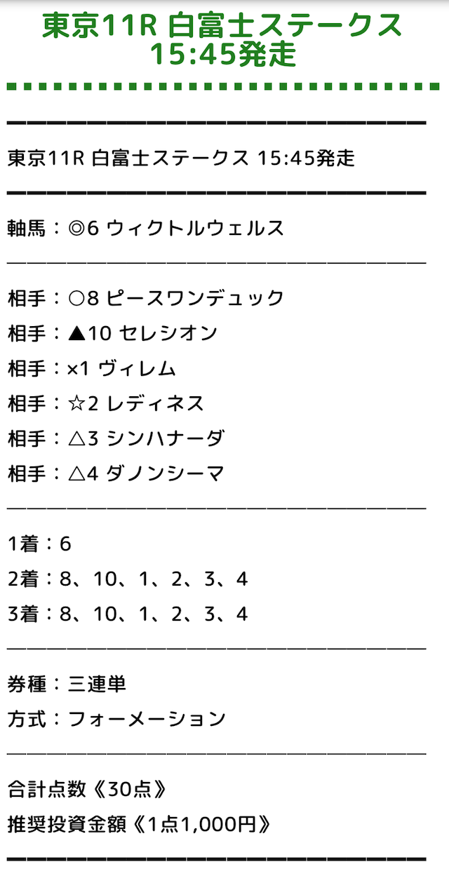 では、実際に公開された買い目を見てみましょう。