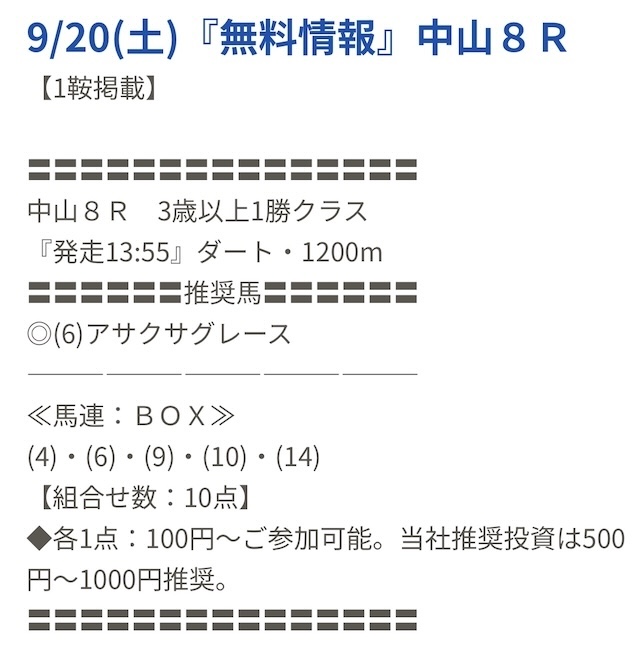 推奨馬券代は1点500円なので、1レースで10,000円の勝負をします。