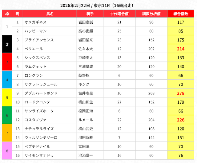 - 選出馬:指数上位5頭