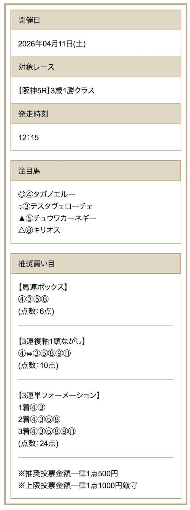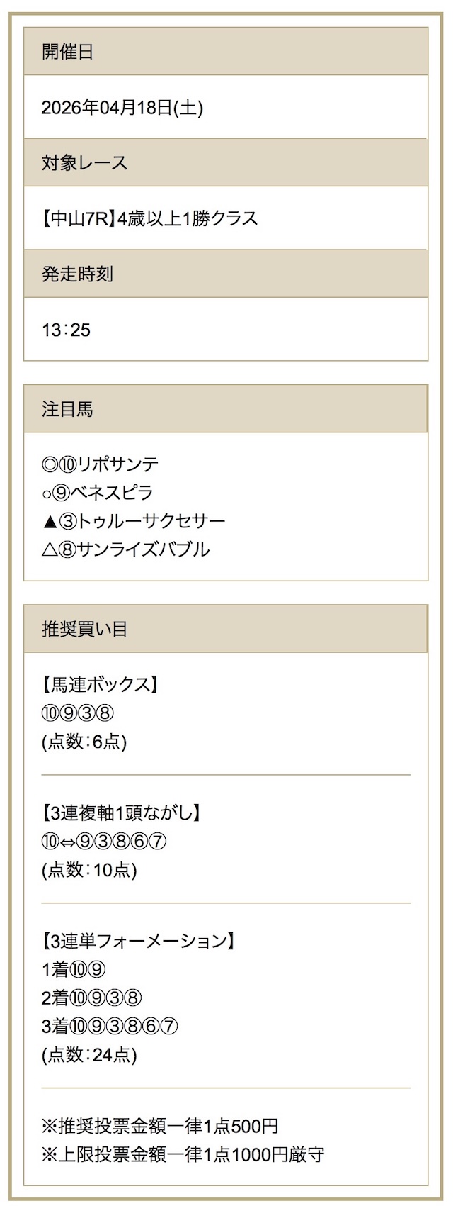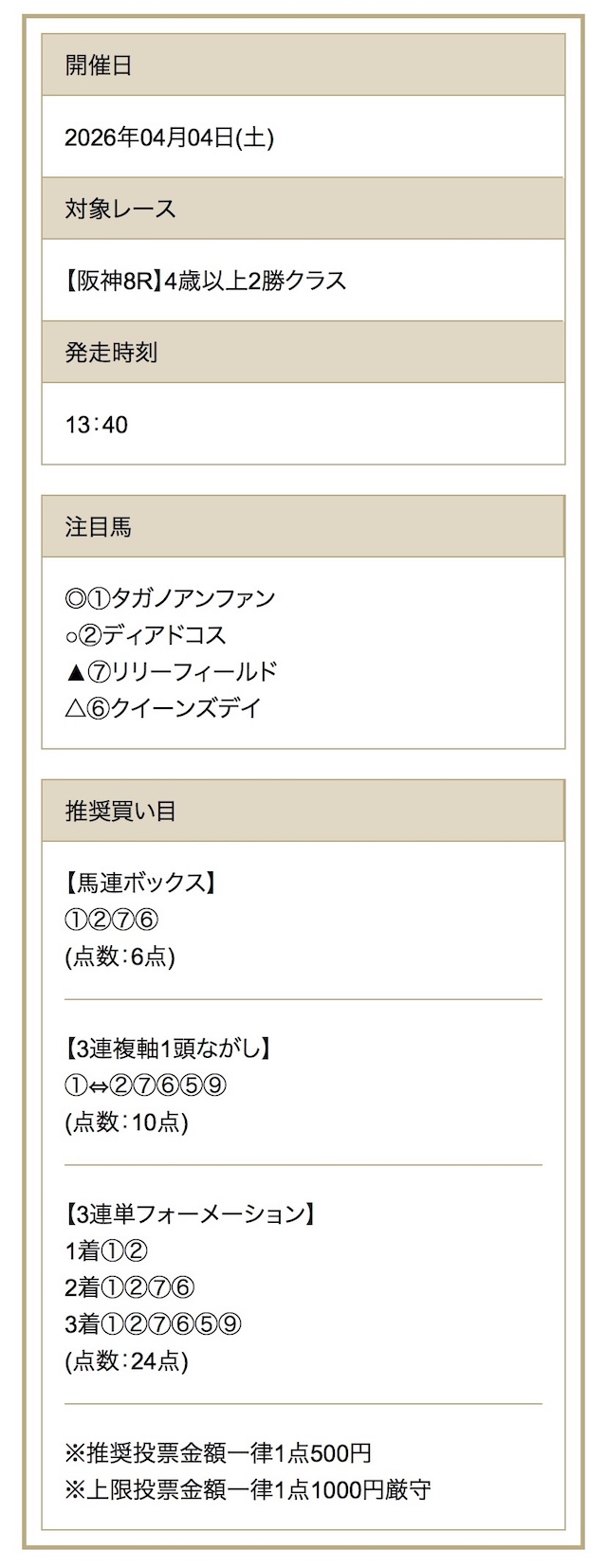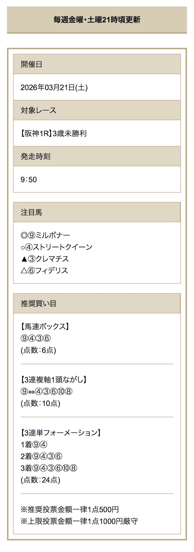 | 推奨馬券代 |