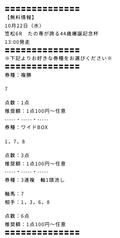 無料予想で堅実に、有料予想で大金を稼げるので抑えておいて下さい。