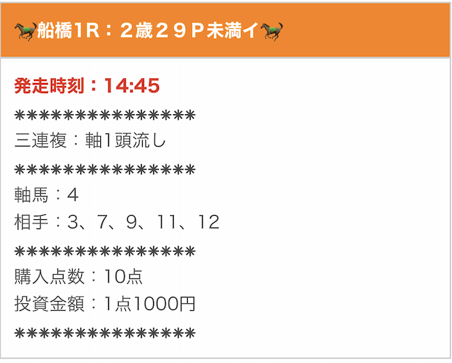 | 買い目の提供日時 | レース当日8時以降 |
