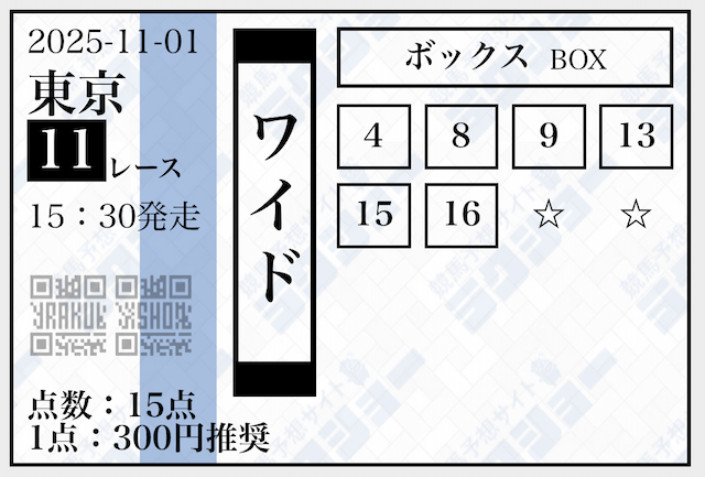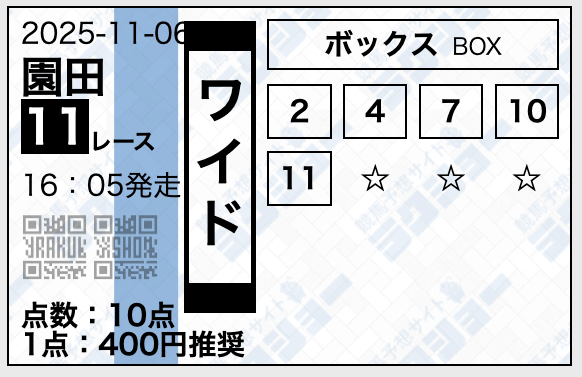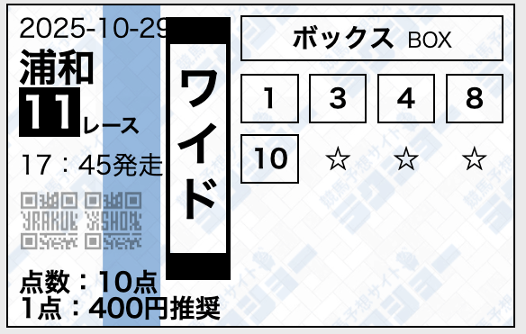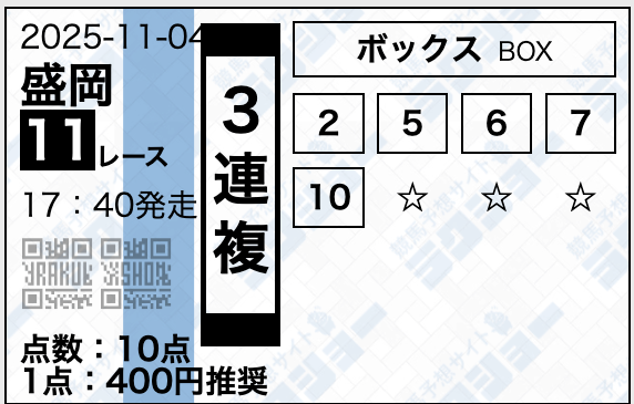 ラクショーは無料予想で複数の券種を提供しており、レースによって券種を使い分けていました。