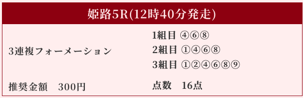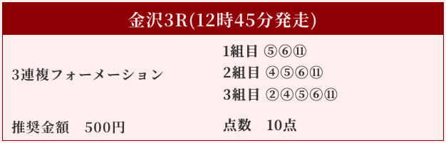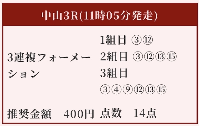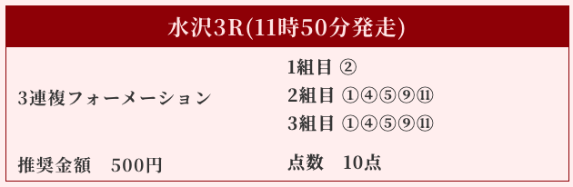 券種は3連複フォーメーションで、推奨金額は5,000円前後です。