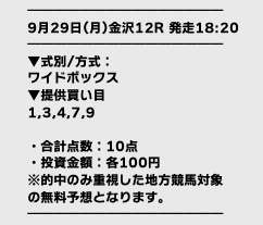 テッパンが公開するワイドの10点を使って連勝だったり、十分な利益を得られることを期待しますが実際はどうなるか。
