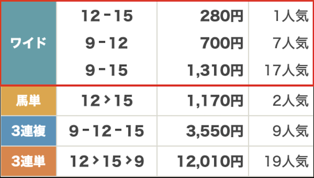 券種がワイドということもあり、爆発的な配当は少ないです。