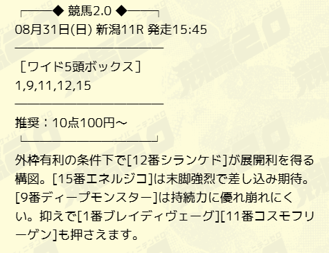 初検証は2025年8月31日の新潟11R「新潟記念(G3)」。