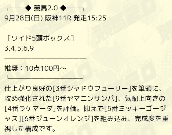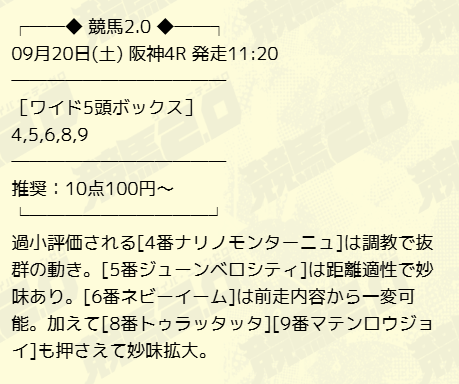 式別適性論 | 180,000円 | 土日3鞍+1鞍 (3連単/5,000円以内) |